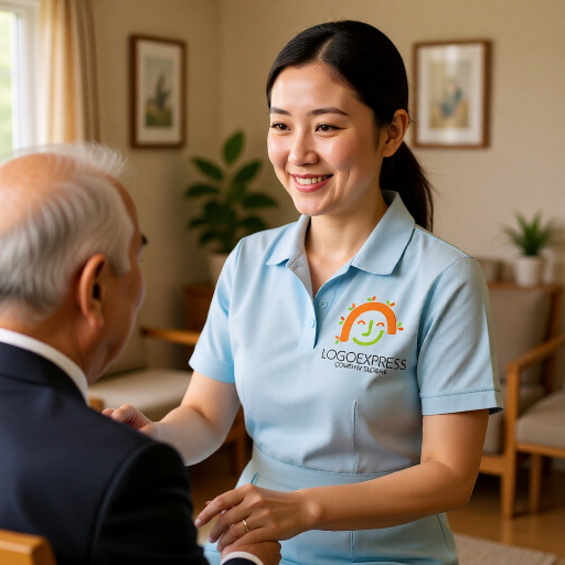 笑顔の顔と、それを包み込むようなアーチ状のモチーフに葉っぱが添えられた、温かみのあるロゴです。