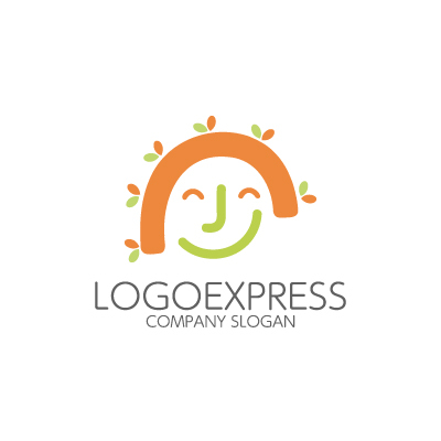 笑顔は、幸福、喜び、親しみやすさ、そしてポジティブな姿勢を象徴し、顧客やサービス利用者に対して安心感と活力を与えます。頭上を飾るアーチと葉っぱは、自然、成長、保護、そしてコミュニティや環境への配慮を表し、企業が提供する環境に優しい製品やサービス、あるいは人々を育む温かい場を連想させます。オレンジ色は、活力、創造性、親しみやすさを、黄緑色は、自然、健康、安らぎ、そして新しい芽生えを象徴し、全体として明るく希望に満ちたイメージを与えます。教育機関、保育園、介護・福祉施設、オーガニック食品、ウェルネス産業、地域コミュニティ支援、環境関連企業など、人々の成長、幸福、そして自然との共生を大切にする業界に最適です。