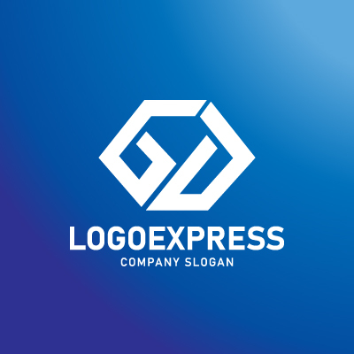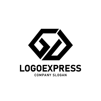 2つの幾何学的な要素が互いに連結し、シャープで洗練された印象を与えるGDのイニシャルロゴです。