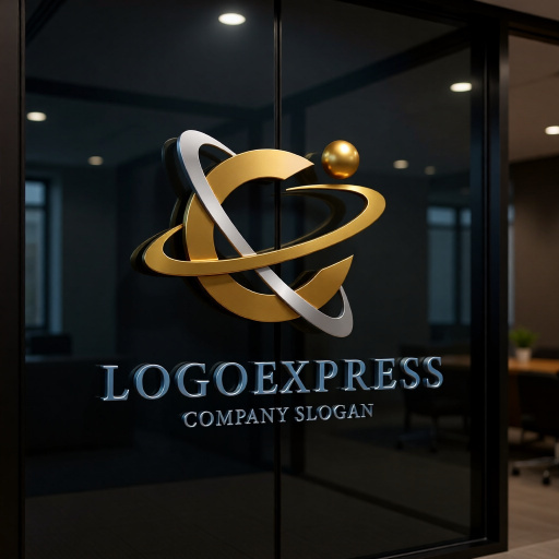 大胆なCの文字、または曲線的なCの形状を中心に、洗練されたシルバーの軌道が周りを巡り、小さな赤い点がアクセントとなっている、ダイナミックなロゴです。