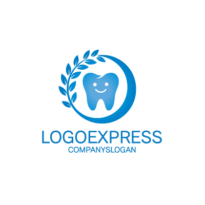 笑顔の歯と葉っぱの自然派ロゴ [9761]
