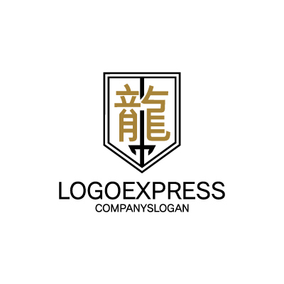 「龍」の漢字と盾の力強いロゴ [9763]