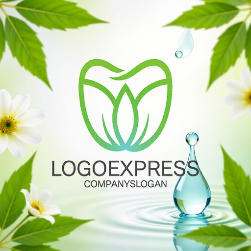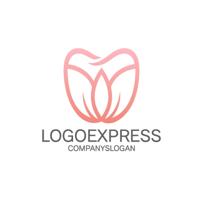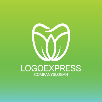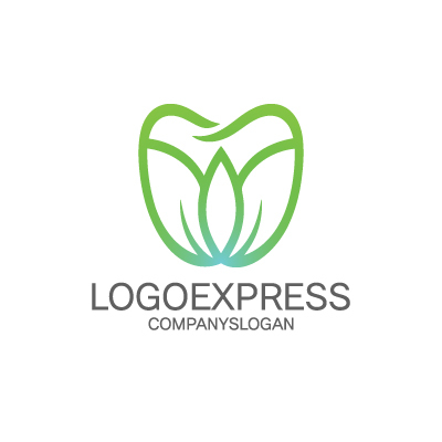 歯の形状は、健康な口腔、清潔感、そして強さを象徴します。中央の蓮の葉(またはつぼみ)のようなデザインと、その周りを囲む葉っぱのモチーフは、自然との調和、オーガニックなアプローチ、ホリスティックな健康、そして優しいケアを表現し、見る人に安心感と信頼感を与えます。全体を構成する曲線は、優しさ、穏やかさ、そして成長を示唆します。緑色からターコイズブルーへのグラデーションは、生命力、自然、健康、安らぎと同時に、清潔感、水、リフレッシュを象徴し、企業が提供するサービスが心身に良い影響を与えることを強調します。歯科医院(特に自然派、オーガニック、予防歯科、審美歯科)、口腔ケア製品(オーガニック歯磨き粉など)、健康食品、ウェルネス、スパ、美容、環境関連企業など、自然の恵みと健康、そして優しいケアをアピールしたい業界に最適です。