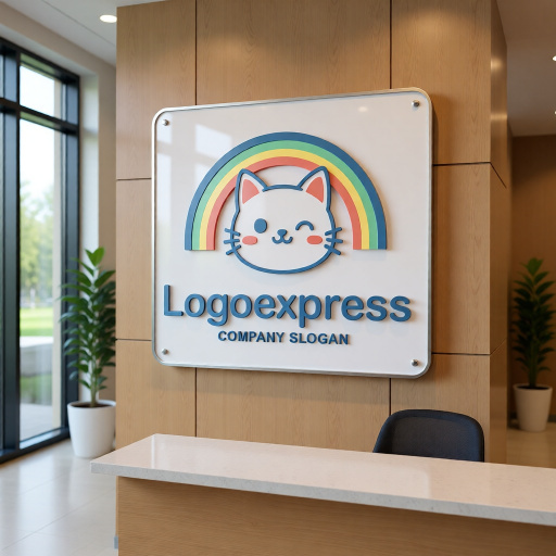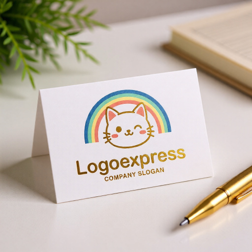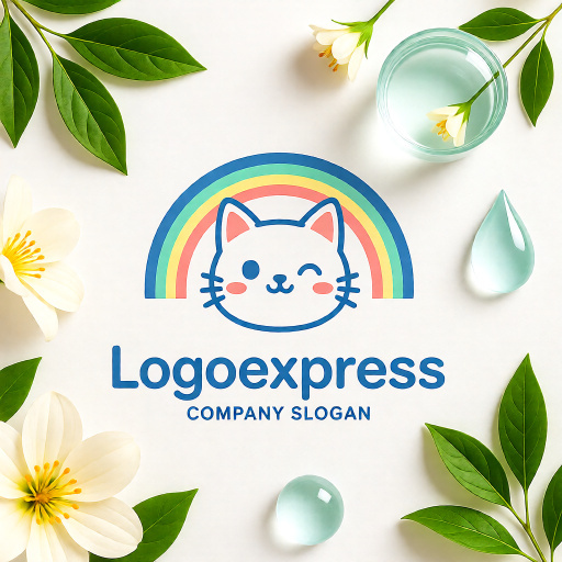 ウインクする猫は、愛らしさ、遊び心、親しみやすさ、そして幸運を象徴し、顧客に対して温かく、優しい印象を与えます。その上に輝く虹は、希望、夢、新しい始まり、多様性、そしてポジティブな未来を意味し、見る人に喜びと期待感を与えます。パステルカラーの配色(ピンク、水色、黄色、緑など)は、温かさ、穏やかさ、子供らしさ、そして親しみやすさを象徴し、企業が持つ優しく明るいイメージを強調します。ペット関連企業、子供向け商品や教育サービス、ウェルネス、カフェ、雑貨店、美容・サロン、NPOなど、優しさ、希望、幸福感、そして楽しさをアピールしたいあらゆる業界に最適です。