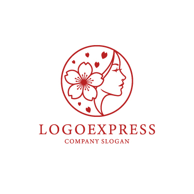 女性の横顔は、美しさ、優雅さ、内面から輝く魅力、そして洗練されたライフスタイルを象徴し、ターゲット顧客の理想像や、企業が提供するサービスがもたらす変革を表します。桜の花は、日本の美しさ、新しい始まり、希望、そして繊細な優しさを象徴し、季節ごとの美しさや、顧客の新たな美への目覚めを表現します。周りに散りばめられた小さなハートは、愛情、思いやり、そして顧客への深い献身を意味します。円形のデザインは、全体性、調和、完璧さ、そしてコミュニティや顧客との繋がりを象徴します。ワインレッド(またはマルーン)の色は、情熱、洗練、高級感、そして女性らしさを強くアピールし、見る人に優雅で忘れがたい印象を与えます。美容・エステサロン、コスメブランド、アパレル、ウェディング、フラワーショップ、女性向けクリニック、和風カフェや旅館、個人ブランドなど、美しさ、優雅さ、愛情、そして日本らしさをアピールしたい業界に最適です。