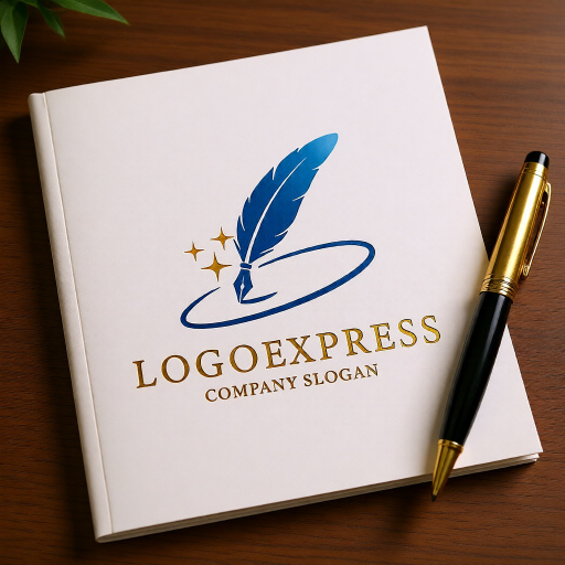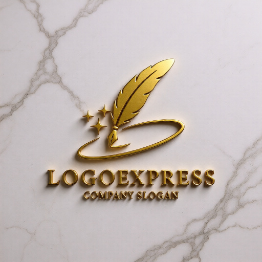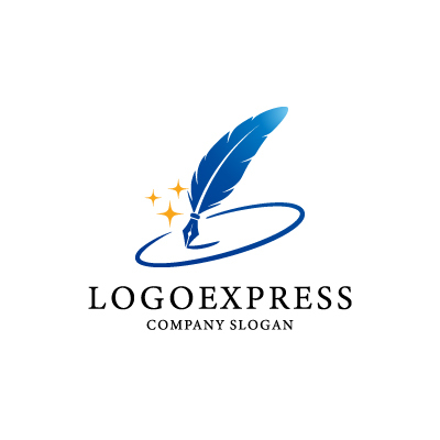 羽根ペンは、執筆、創造性、知識、芸術、コミュニケーション、伝統、そしてエレガンスを象徴し、企業がメッセージやアイデアを正確かつ洗練された形で生み出すことに力を入れていることを示唆します。周りを巡る軌道は、グローバルな展開、繋がり、完全なシステム、そしてダイナミックな進歩を表現し、未来志向で相互に連携するアプローチを意味します。輝く星は、インスピレーション、卓越性、成功、革新、そして高品質への追求を象徴し、見る人に信頼感と期待感を与えます。青色のグラデーションは、信頼性、知性、プロフェッショナリズム、そして創造性を、金色の星は、輝き、卓越した品質、成功、そしてわずかな魔法のような魅力を象徴し、企業が持つ知性と活力を強調します。出版、教育、コンサルティング、法律事務所、メディア、芸術、高級ブランド、クリエイティブ産業など、知識、コミュニケーション、創造性、そしてグローバルな革新をアピールしたいあらゆる業界に最適なデザインです。