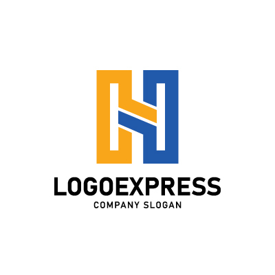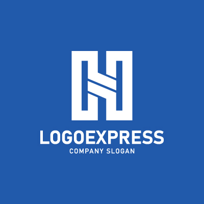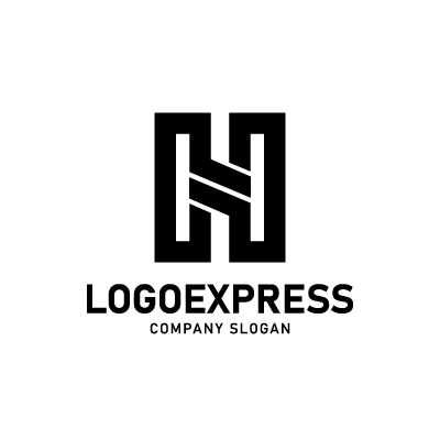 Hの文字をシャープなブロックで表現し、中央を斜めのラインで連結した、モダンで力強いロゴです。