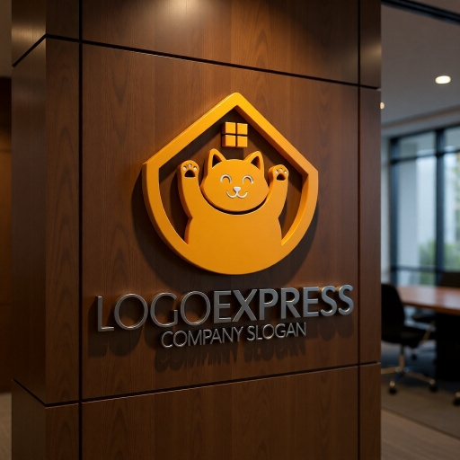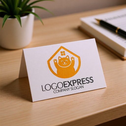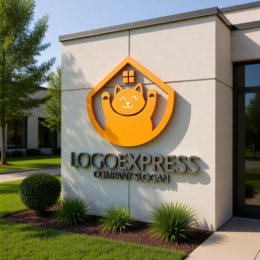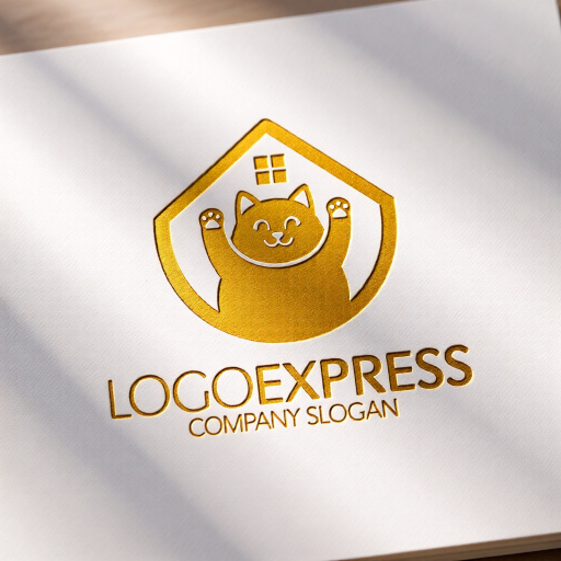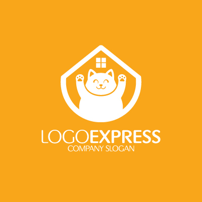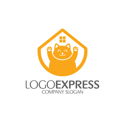 家の形状は、ペットにとっての安全で安心できる居場所、安定した環境、そして保護を象徴します。中央に描かれた笑顔の猫は、愛らしさ、幸福、満足感、そして癒しを提供し、ペットとの幸せな暮らしを表現します。両手を広げたようなポーズは、喜び、開放感、活気を意味し、企業が提供するサービスがペットとその飼い主にポジティブな体験をもたらすことを示唆します。オレンジ色は、温かさ、親しみやすさ、活力、幸福感を象徴し、顧客に対して明るく、優しい印象を与えます。ペットショップ、動物病院、ペットホテル、ペットシッター、保護猫活動を行うNPO、子供向けサービス、ペット可の不動産、ライフスタイルブランドなど、ペットへの愛情、安心感、そして幸福をアピールしたいあらゆる業界に最適です。