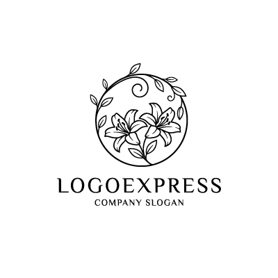 優美なユリの花と蔓(つる)が円の中に繊細なラインで描かれた、上品で自然な美しさを表現するロゴです。