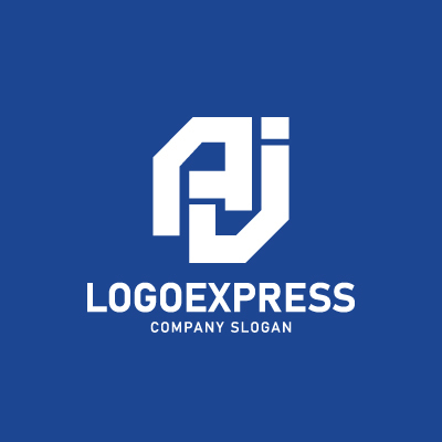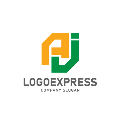 六角形のフレームの中でAとJの文字がスタイリッシュに融合した、モダンで力強いロゴです。
