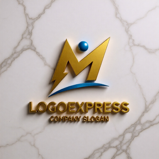 Mの文字に稲妻が融合し、その下を勢いのある曲線が走る、ダイナミックで力強いロゴです。