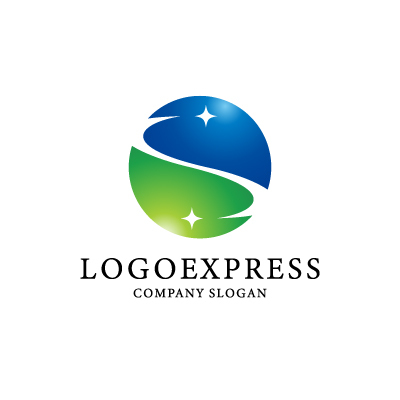 このロゴの中心にあるS字の形状は、企業名やブランドの頭文字として使用できるだけでなくといった多様な意味合いを込めることができます。上部の青い部分は空や水を、下部の緑色の部分は大地や自然を表現し、環境との調和やクリーンなイメージを強調します。S字のラインが円を分断しつつも繋がっているのは、変化と継続、あるいは相反する要素のバランスと統一を意味します。二つの輝く星は、希望、革新、卓越性、そして未来への光を象徴し、企業が提供するサービスの品質と展望を伝えます。