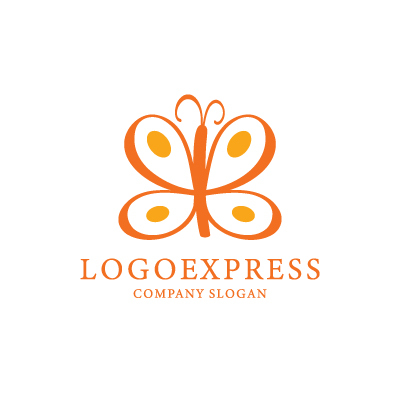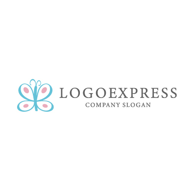 パステルカラーの羽根にピンクのドットが愛らしい、可愛らしい蝶のロゴです。