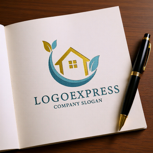 中央の家は、安定、安心、そして家族の温かい空間を象徴し、企業が提供する住まいが顧客にとって信頼できる基盤となることを示します。家を包み込む曲線と葉っぱは、自然との共生、環境への配慮、成長、そして優しく健康的なライフスタイルを表現し、見る人に安らぎと信頼感を与えます。特に、水色の曲線は水や空気の清らかさ、または保護のジェスチャーを暗示します。緑色の家と葉は、生命力、健康、成長、安らぎを、水色の曲線は、清潔感、信頼、そして穏やかさを象徴し、企業が持つ環境への配慮と顧客への安心感を強調します。不動産、建設、リフォーム、環境関連企業、オーガニック製品、ウェルネス、ホームクリーニング、水処理サービス、地域コミュニティ支援など、自然との調和、安心、健康、そして持続可能性をアピールしたいあらゆる業界に最適です。