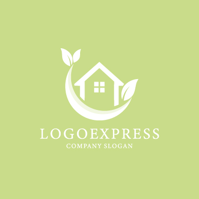 優しく包み込むような葉と曲線で囲まれた、自然と調和した家をモチーフにしたロゴです。