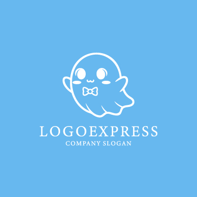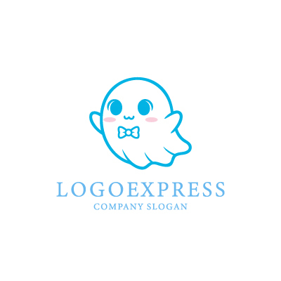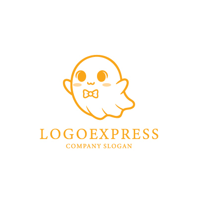 蝶ネクタイをした、愛らしい表情の可愛いお化けのロゴです。