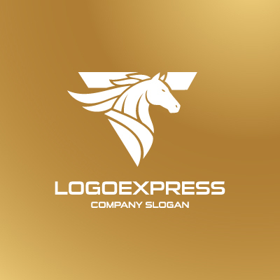 T字と駿馬の力強い黄金ロゴ [9863]