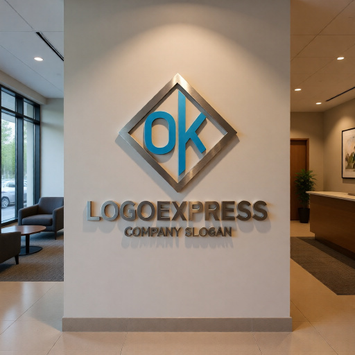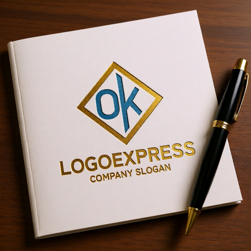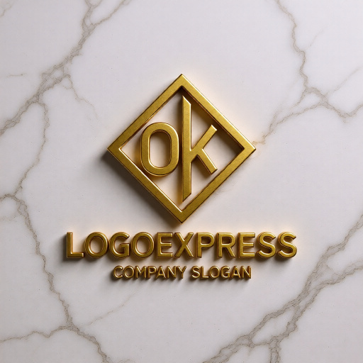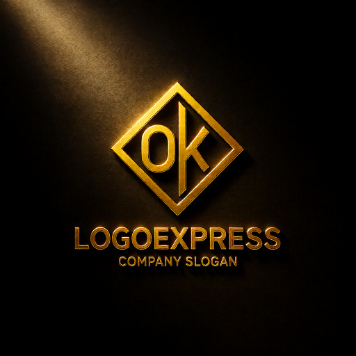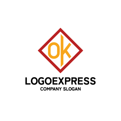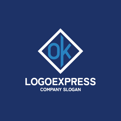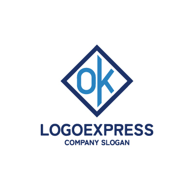 OとKの文字を菱形(または四角形)のフレームの中にスタイリッシュに配置した、モダンで信頼感のあるロゴです。
