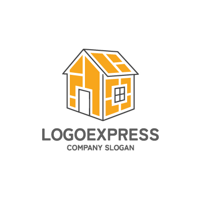 このロゴは、幾何学的なブロックが組み合わさって家を形成している、モダンで洗練されたデザインです。