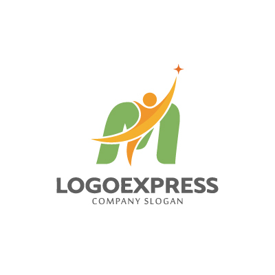 Mは、企業名やブランドの頭文字として使用できるだけでなく多様なポジティブな意味合いを込めることができます。中央の人物が星に手を伸ばす姿は、個人の成長、目標達成、成功、そして未来への希望や卓越したビジョンを象徴し、企業が顧客の能力を引き出し、夢の実現を支援する姿勢を表現します。緑色のMは、自然、健康、成長、安らぎ、育成を、オレンジ色の人物と星は、活力、情熱、創造性、そして明るい未来への希望を象徴し、企業が持つポジティブで信頼できるイメージを強調します。教育機関、コーチング、コンサルティング、ウェルネス産業、人材育成、NPO、スポーツ関連、スタートアップ企業など、人々の成長、希望、そして自己実現をアピールしたいあらゆる業界に最適です。