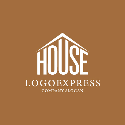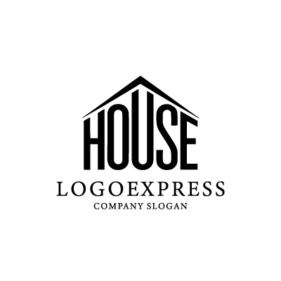 「HOUSE」の文字そのものが家を形成し、その上には屋根の形が象徴的に描かれた、安定感と温かみのあるロゴです。