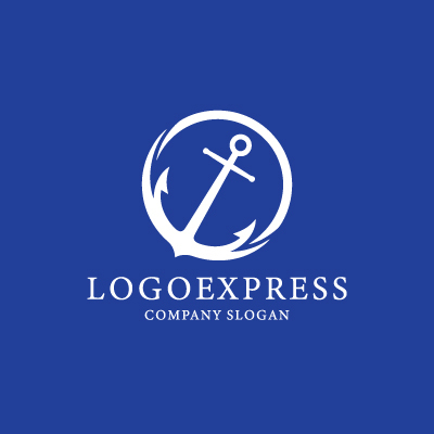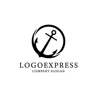波のような曲線に囲まれた円の中に、錨(いかり)が描かれた、信頼と安定感を象徴するマリンロゴです。